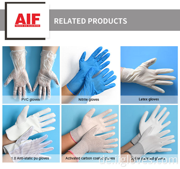 PVC -Handschuhe bestehen aus PVC -Material und sind für die niedrigste Anaphylaxie des Reinraums, niedrigere extrahierbare Ionen und die Sterilisation und den ESD -Schutz entsprechen.